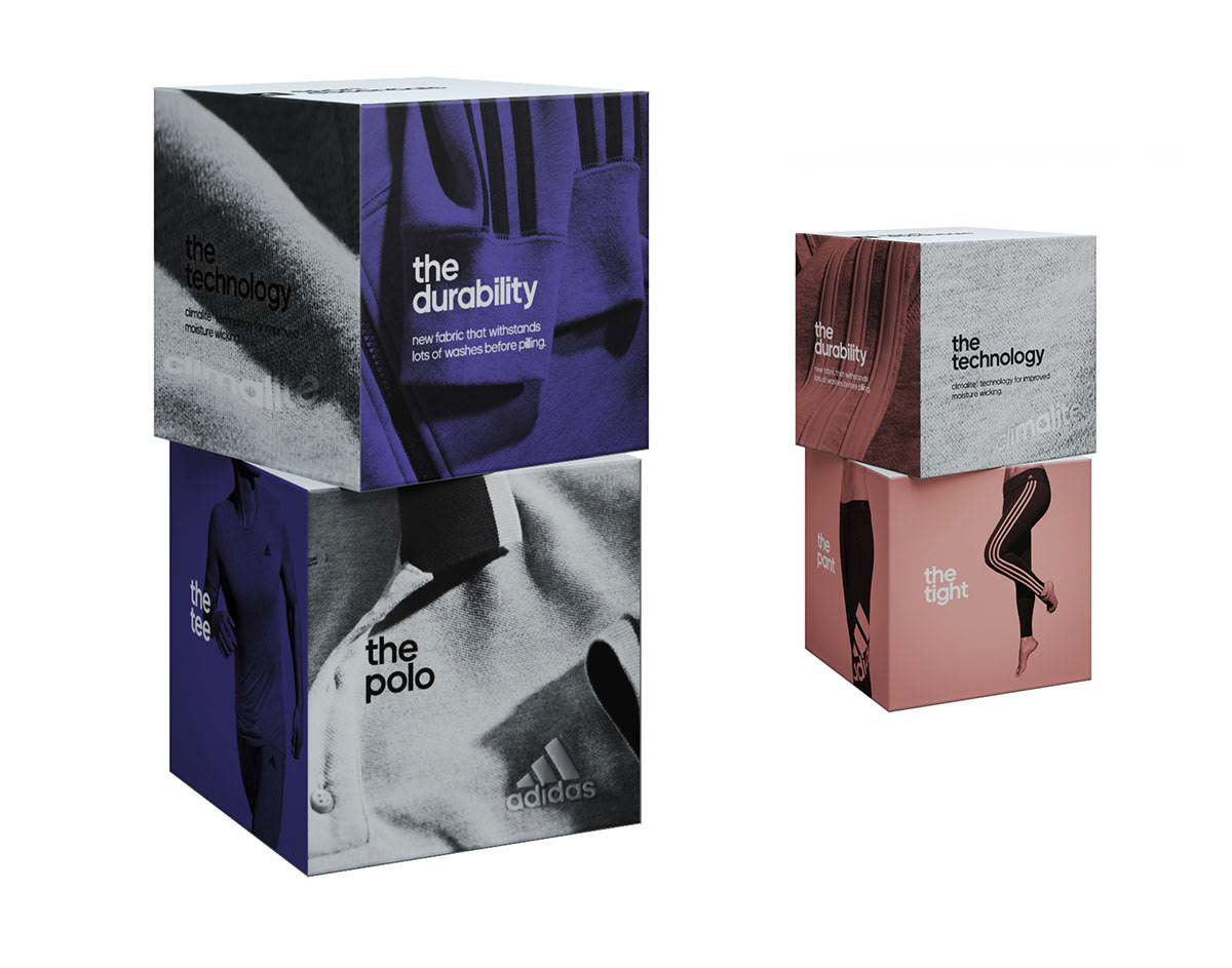FYFF staged the adidas Sports Essentials at the point of sale . The brand with the three stripes is focused on this active apparel to the essentials and engage in the wardrobe drwaers for basics such as shirt , hoodie or short . So clearly the orientation of the Sports Essentials - so clear is also the POS campaign : clean lines , clear words and a clear message. FYFF supervised the campaign from idea to implementation : Conception and design of the visual identity , shoot with photographer Thomas Bönig , creation and design of POS materials and collaterals included copywriting for the entire project .