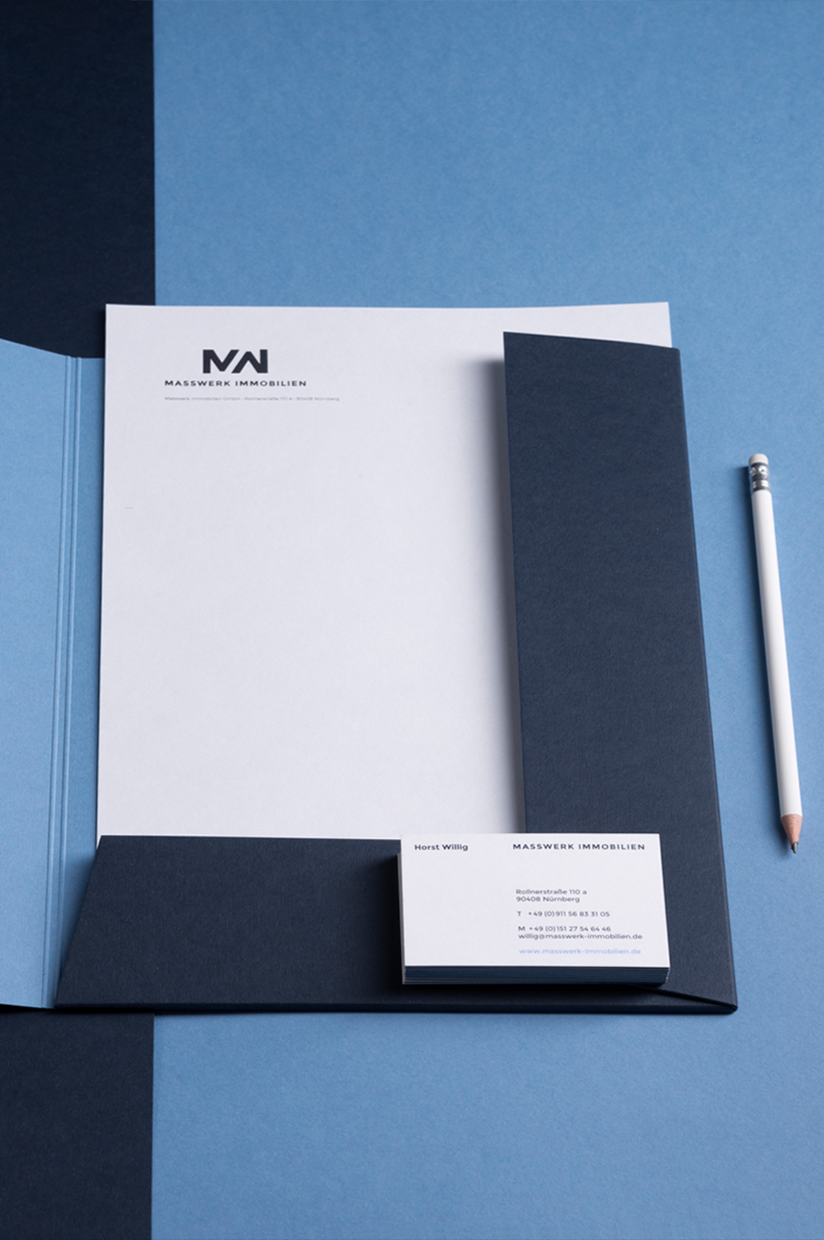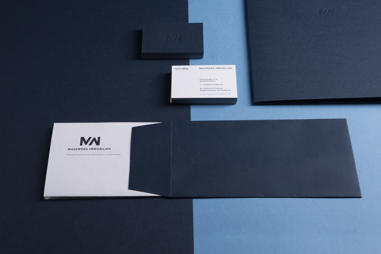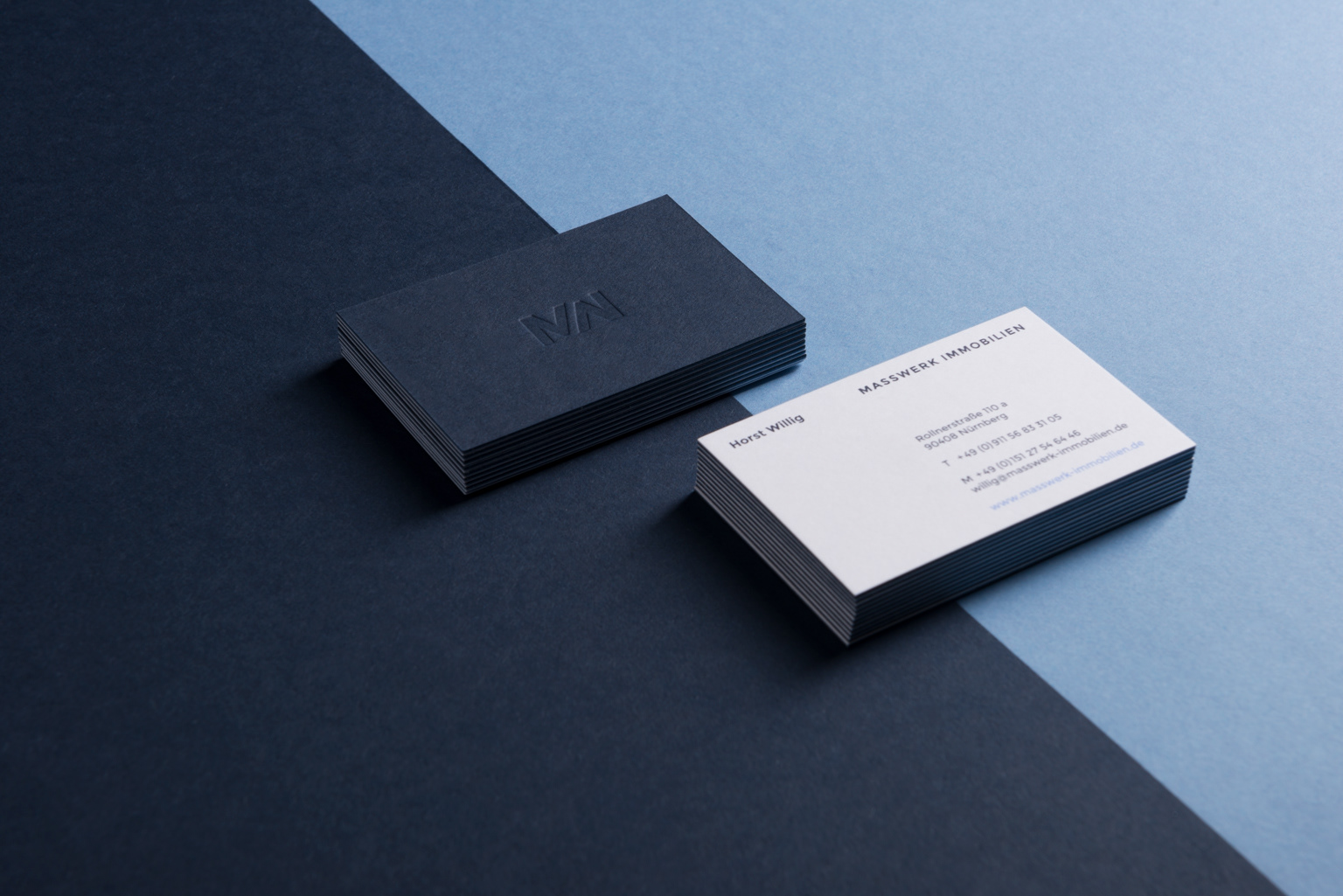 The Estate Agents of Masswerk primarily care for customers in the luxury real estate segment. Accordingly, the new look was expected to be high quality and elegant. The logo forms a minimalist figurative mark, which is used on all elements of the business equipment in an embossed form. The cards are 3 – in the new corporate colors – Papers laminated to one block. Not only the materials but also the thickness of the cards keeps Masswerk to its customers in mind. In addition to the business equipment, a new website, which is also reduced, modern and appears refined elegance.