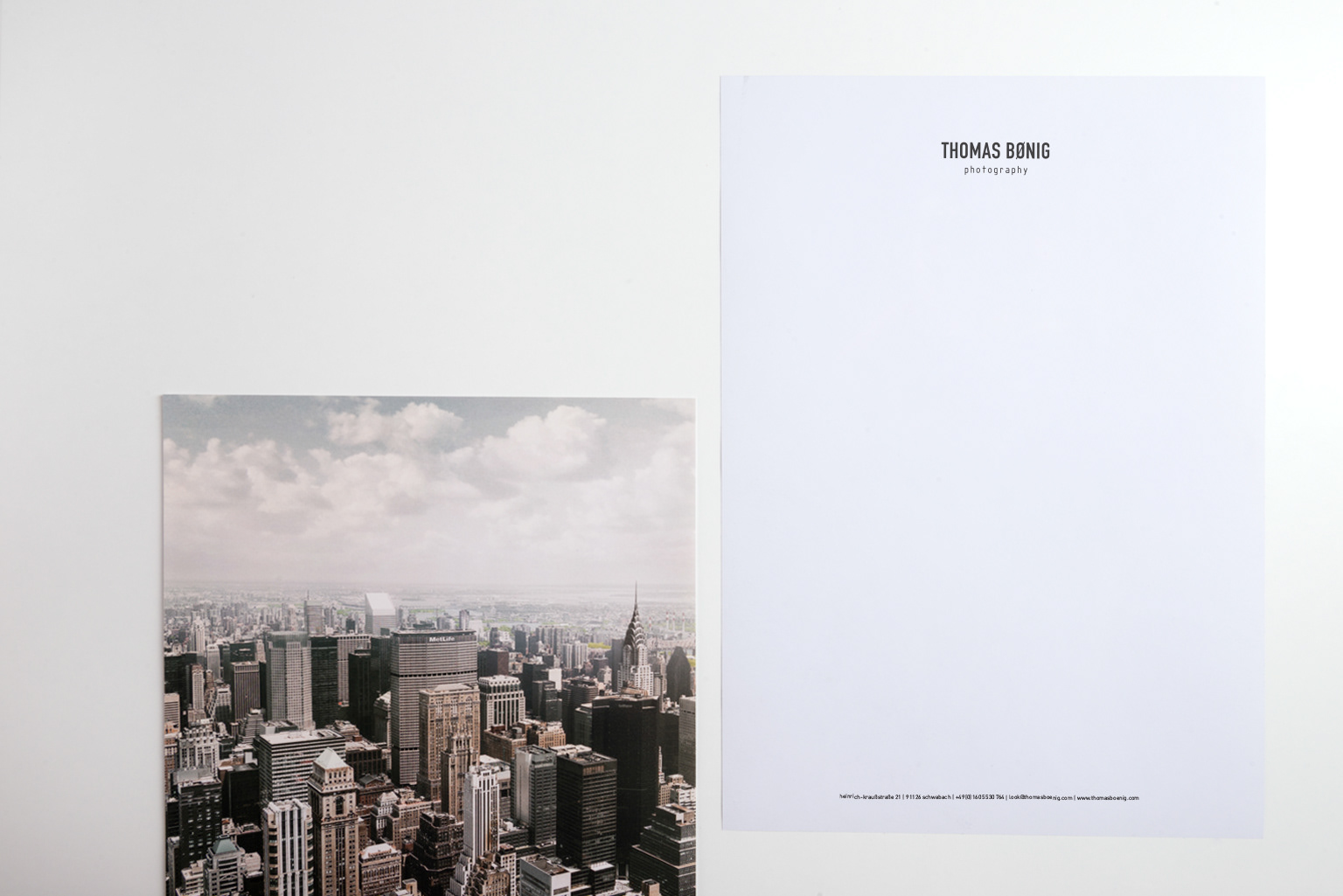 Observing with the camera, the one moment hold without elevating or to exaggerate - this is the passion of Thomas Bönig. For the photographer, FYFF developed an expressive corporate design, including a new web design. Of course, on all devices, the photographs can appear in the best light. Photography is light and shadow. Therefore, it stands to reason that the design concept is maintained in timeless black and white and thus the photographs are in the foreground. A straight word mark forms the logo of the corporate design. The typographic characteristics of the “Ö” associated the focal point of a camera and is therefore detached used as figurative mark. The Snazzybag reminiscent of a darkroom and the image on the back of the letterhead builds an exhibition series. One more reason to frame a letter, rather than be filed. A special include the business cards. With small slits they become passe-partouts, that can be provided with small pictures and give each photo so special attention.